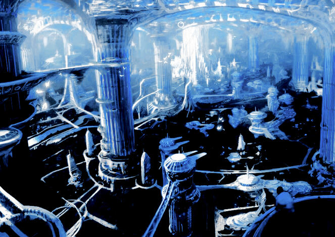 Ⅲ. Throughout the structures, many may find crystal blue waters streaming through the city blocks or lands. These are purified waters providing sustenance to those that may desire a drink, or even a swim. Filtration is done through nanomachines swimming through the waters, a single one being able to purify a 20 square liters of said water. The waters are used for transportation as well, as their stream provides swimmers, canoe's, boats and so on the locomotion to their next destination.