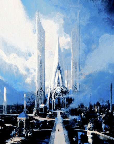 Minos's palace, known as the GREAT AZURE, is located within the center of the kingdom. A gigantic, tri-tower complex. The front towers being used for various purposes, containing Minos's indoor gardens, fractal ecosystems, scientific and biological experemintation rooms and so on. The middle tower, being the shortest of all, is Minos's main palace, containing his throne, his room, and majority of the locations where private businesses are taken care of.
